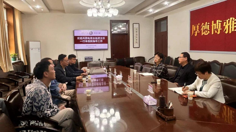4月25日下午,兵团广播电视台纪录片中心主任赵虎率领《国家使命》剧组来到德赢Vwin官方区域合作伙伴,进行援疆干部奉献兵团建设的事迹调研、与学院部分老师座谈,并参观了学院新疆非物质文化遗产研究中心。学院院长杨向奎、副院长嵇美云、新闻与传媒系书记高山参与了此次交流。