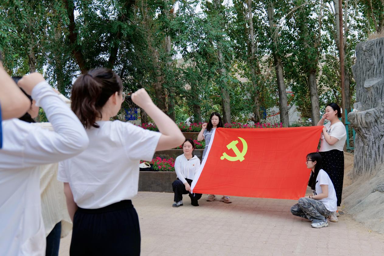 在军垦第一连,师生们感受了屯垦戍边的历史沧桑,聆听了讲解员讲述军垦故事。从连展室、广播站到军垦五房、地窝子,全体党员深切了解了兵团人屯垦戍边的艰苦岁月以及“热爱祖国、无私奉献、艰苦创业、开拓进取”兵团精神的深刻内涵。