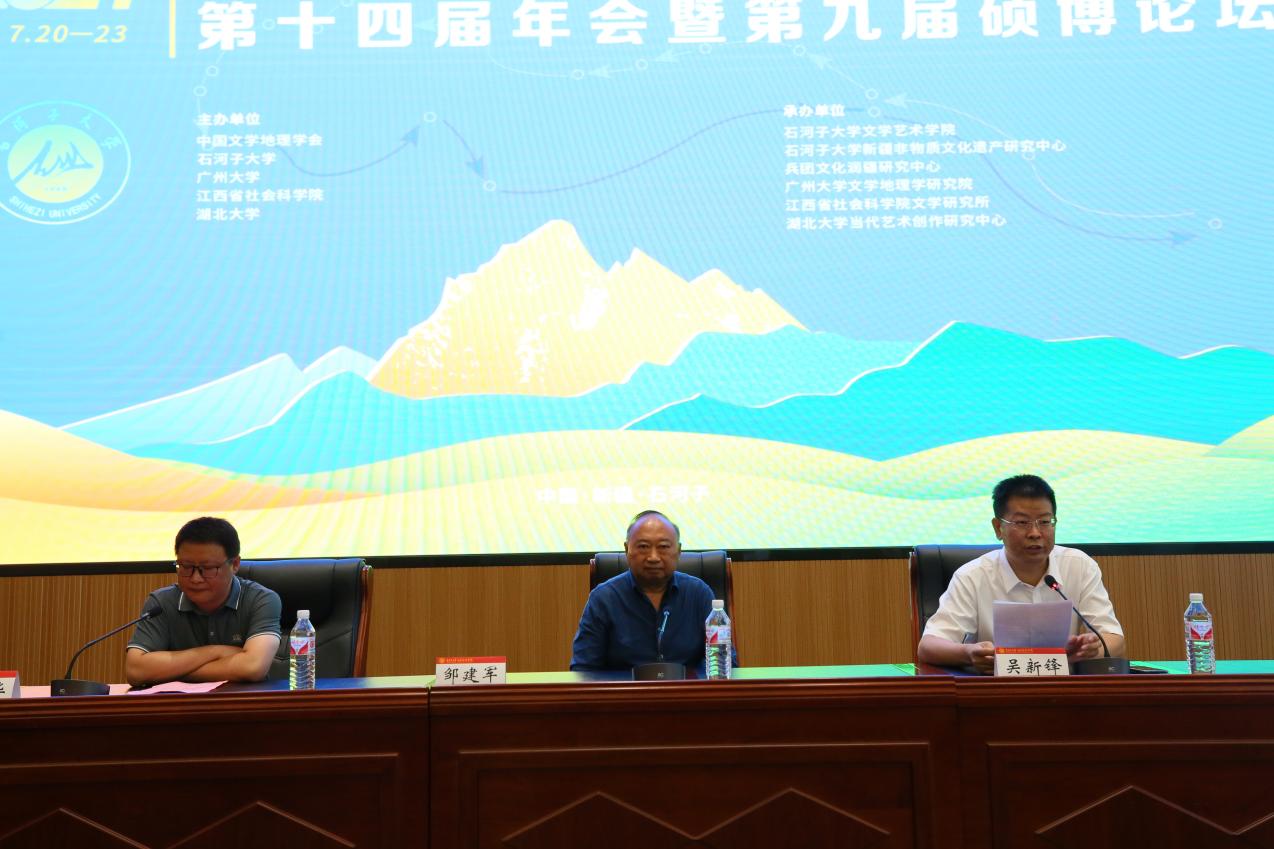 曾大兴会长代表中国文学地理学会向德赢Vwin官方区域合作伙伴和德赢Vwin官方区域合作伙伴为本届年会所做的充分准备和周到安排表示感谢,并向与会的日本、韩国和国内专家、学者表示热烈的欢迎。他指出,来新疆举办中国文学地理学会第十四届年会和第九届硕博论坛意义重大。一方面,新疆是全国最大的省级行政区,有着悠久的历史和文化积淀,是世界四大文明交汇之地,历史上就是文明汇聚、文化融合的前沿阵地,丰富的民族语言和多民族文学创作为文学地理学的研究带来了先天优势;另一方面,自西汉以降的历代屯垦事业使新疆成为重要的移民区,数量庞大的移民也带来了文化上的繁荣和五彩斑斓的文学创作,是文学地理学研究不可多得的宝库。他呼吁广大文学地理学研究者要主动出击,做好三个点:第一是要结合历史文献记载和考古发掘,对新疆的文学地理进行深入广泛地研究,搞清楚西域的历史地理分布以及民族地域分布于文学要素地域分布的关系和特点;第二是要做好文学文献的搜集和整理工作,要在文献整理的“尽全原则”下做好甄别和考证,做到没有遗漏。不仅要收集新疆的古代文学作品,也要收集新疆的现当代文学作品,做好“新疆的外地作品”和新疆本土作家作品的全品类搜集和整理工作;第三是要做到学科融合,一是做好文学与地理学的融合,要培养既懂地理又懂文学的文学地理学者,二是要做好文学的各个二级学科之间的融合,不但要打破文学和地理学之间的界限,更要打破文学内部各个二级学科之间的人为障碍,做到古代与当代、中国与外国、作家文学与民间文学、文学史与文学理论之间的融通。