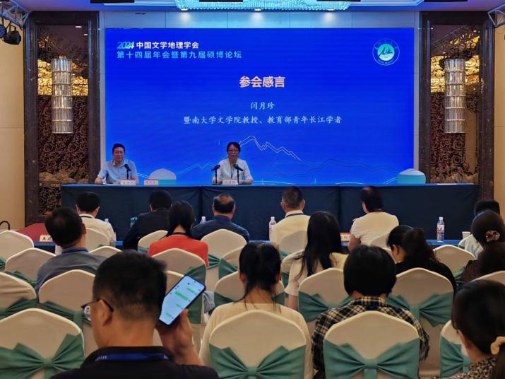 在闭幕式上,暨南大学文学院闫月珍教授发表了参会感言,她表示,本届年会体现出的包容性令人印象深刻,来自全国各地乃至日韩邻国的学者们显示出文学地理学强劲的生命力。她还结合自己“物候与文学”的研究兴趣,认为文学地理学在建构中国自主知识体系的倡议下,要大胆跳出西方的恋地情结、文学与风景、城市与乡村等研究窠臼,探寻具有中国特色的文学地理学研究路径。