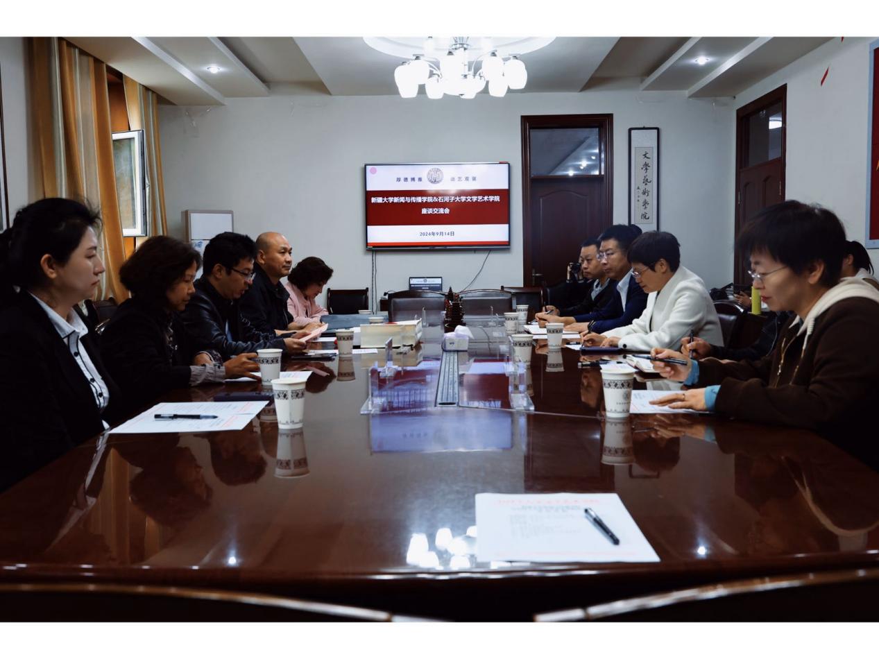 2024年9月14日,新疆大学新闻与传播学院杜松平副院长一行来德赢官网座谈交流。交流会在东1-207会议室举行,嵇美云副院长(援疆)主持。胡新华副院长、吴新锋副院长及新闻与传媒系领导、老师与会交流。