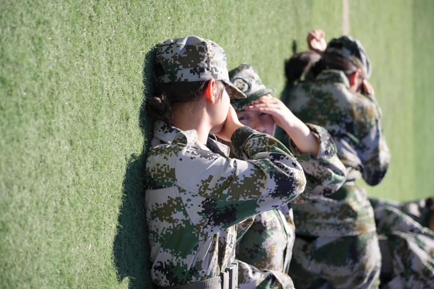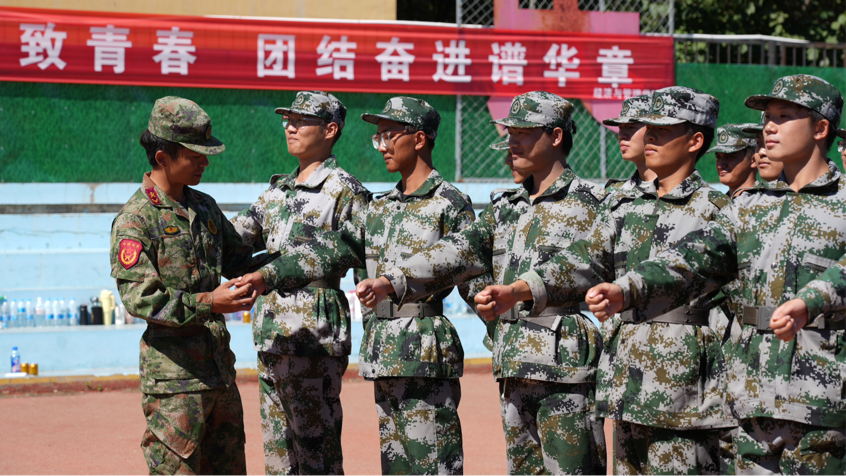 一个个坚毅的脸庞闪着莹莹的光辉,是汗水从毛孔浅浅地溢出,像是给脸庞镀上了一层金,或有晶莹的一滴落入衣领。沾湿的额前、发尾都彰显着年轻活力。教官们时不时的“突袭”,也让他们更加专注。挑不开的手掌是他们精益求精的追求。