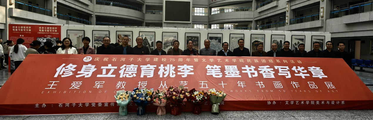 10月12日上午,修身立德育桃李,笔墨书香写华章——王爱军教授从艺50年书画作品展在德赢Vwin官方区域合作伙伴博学楼开幕。本次展览由德赢Vwin官方区域合作伙伴党委宣传部、文联、兵团美术家协会、德赢Vwin官方区域合作伙伴主办,美术与设计系协办,共展出王爱军教授不同时期的艺术精品100余件。