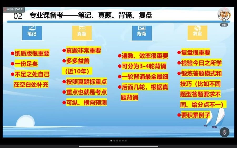 学科教学语文方向的研究生王娇娇主要针对专硕考研经验进行分享。谈及院校专业抉择,她提醒同学们权衡兴趣、实力与院校报考难度等诸多因素;针对公共课学习计划,她提出几点看法,英语单词背诵需“循序渐进”,以扎实的积累筑牢阅读理解的根基;其次,考研政治科“刷题”节奏要张弛有度,在巩固知识与拓展思维中稳步提升;最后,她提到专业课要“深耕细作”,深度剖析知识体系,全力吃透真题,精准把握考察要点,从而实现高效备考,提升上岸几率。