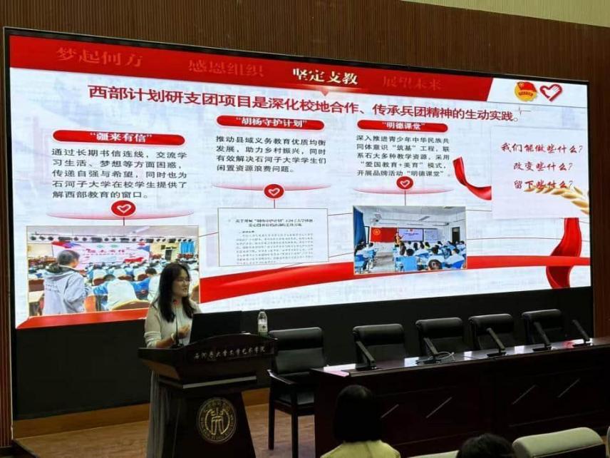 第二十五届研究生支教团成员李玉婧围绕支教生活的多元维度,分享了自我成长经历。除了完成日常教学任务,她还主动承担起了学校公众号运营工作,用文字和镜头记录校园生活与孩子们的成长瞬间,助力外界了解西部教育的现状。同时她积极参与当地马拉松赛事协助、文化节策划等志愿服务活动。“这些经历不仅锻炼了我的能力,也让我更深入地融入了支教地,看到了教育更广阔的外延,那些未曾见过的世界的另一面。”她的分享展现了支教者在教学之外的责任与担当,让大家对支教生活有了更深入的认识。