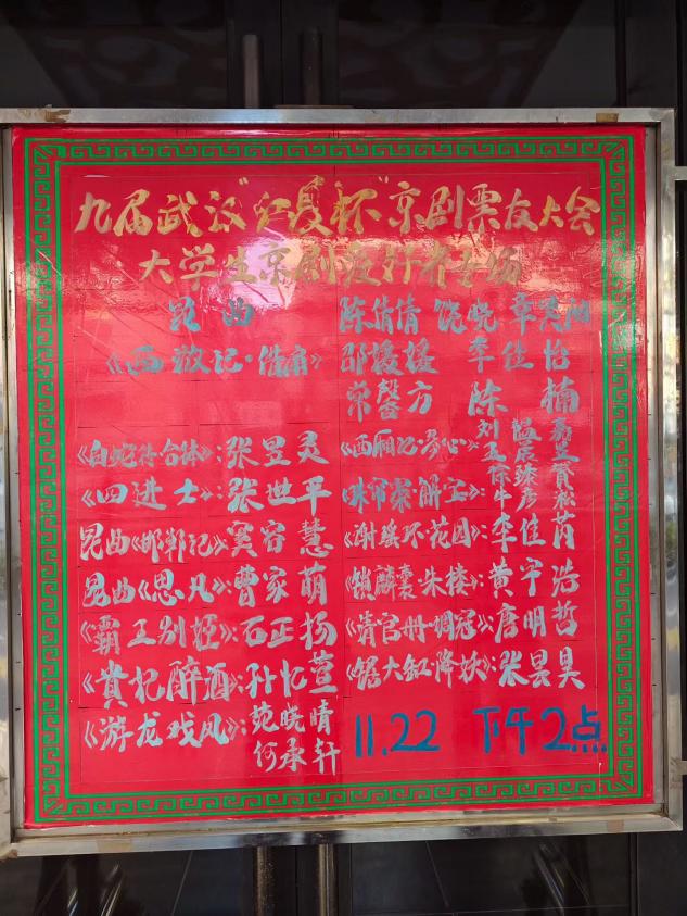 11月22日,第九届武汉“江夏杯”京剧票友大会大学生京剧爱好者专场在武汉市天一剧场举办。来自全国各地的京剧爱好者齐聚江城,共赴这场梨园盛会。德赢官网德赢Vwin官方区域合作伙伴戏迷票友协会成员孙忆萱、石正扬,在前期的视频海选中脱颖而出,成功获得参与资格,代表学校登上这一知名票友舞台,带来梅派经典名段《贵妃醉酒》、《霸王别姬》,践行青年一代对非遗传统艺术的传承。