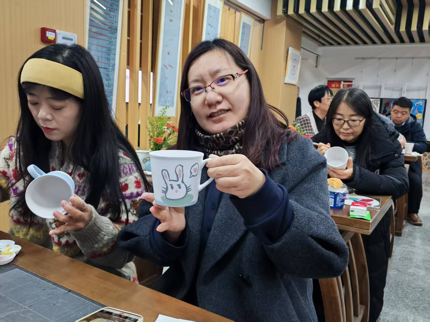 感受过视觉与听觉的盛宴后,活动进入非遗手工陶艺体验环节。参与者们在素坯杯子上,用心绘制自己喜爱的图案,或山水,或花鸟,或对新年的寄语,将个人的情感与创意融入一件件独特的陶艺作品之中。这个过程不仅是对传统手工艺的切身感知,更是静心凝神、陶冶情操的美好时光。