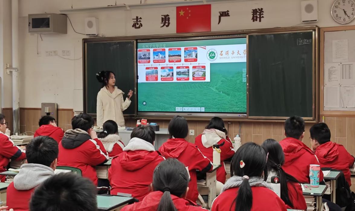 “站上讲台那一刻,看到台下专注的眼神,就像看到三年前埋头刷题的自己。能把我们在石大的真实生活讲给他们听,告诉他们‘远方并不遥远’,这趟回来值了。”宣讲队成员洪艺倩同学说。