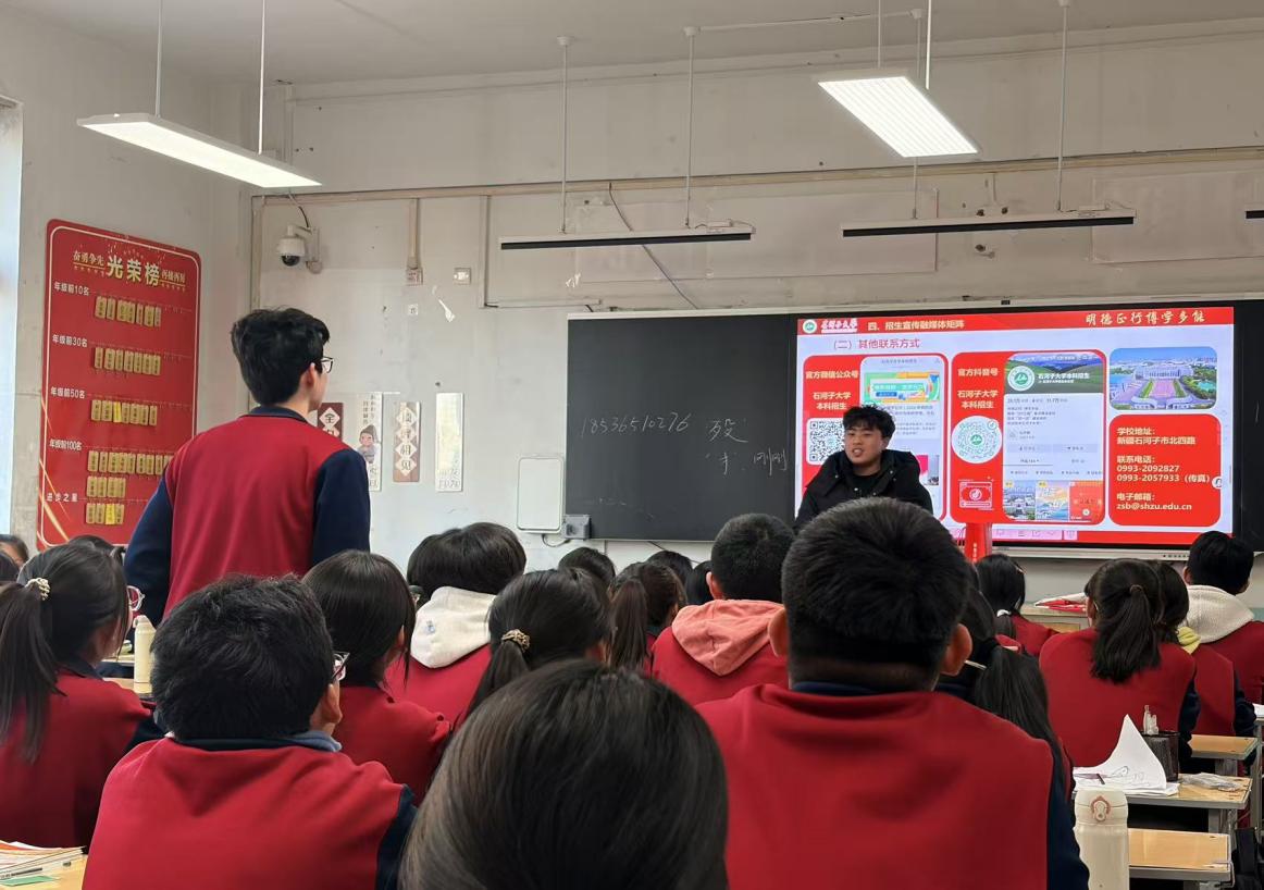 宣讲中,团队从德赢Vwin官方区域合作伙伴的校史讲起,结合其作为国家“双一流”建设高校及西部重点大学的优势,系统介绍学校的师资力量、学科布局和人才培养特色。特别针对山西学子关注的在晋招生政策、转专业机制及联合培养项目等,团队成员逐项解读,耐心释疑。他们还用镜头记录下的校园四季、社团风采与生活点滴,向学子们展示坐落于“戈壁明珠”石河子市的这所高校的独特魅力,打破地域刻板印象。在随后的互动环节中,学弟学妹围绕专业选择、志愿填报、备考心态等踊跃提问,团队成员均耐心一一作答。