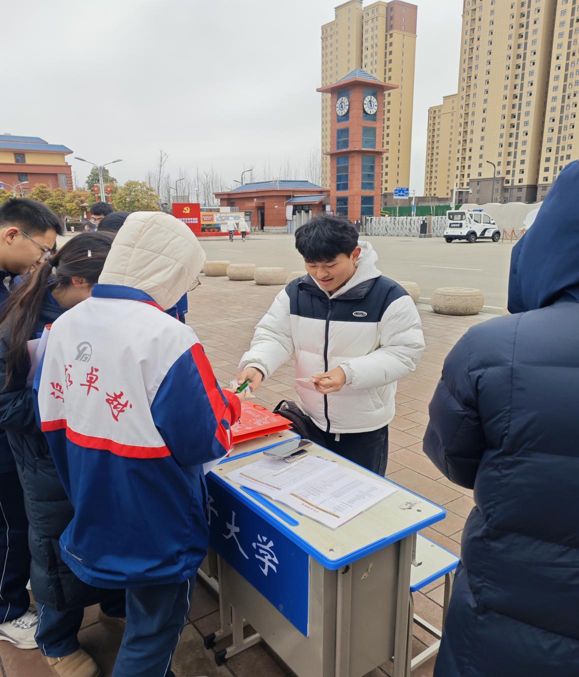 活动现场,团队在展位开展咨询服务,耐心解答专业报考、学科特色等问题,分享大学生活与学习经验,介绍学校学科优势、校园文化与人才培养成效。咨询台前,团队送上定制文创伴手礼——镌刻校训的书签、定格戈壁绿洲风光的校园明信片。这些物件承载的不仅是校园记忆,更是几代兵团人扎根边疆的精神底色。当它们递到中原学子手中时,一份奔赴西部、服务边疆的邀约也悄然发出:在祖国最需要的地方,同样可以绽放最绚丽的青春。